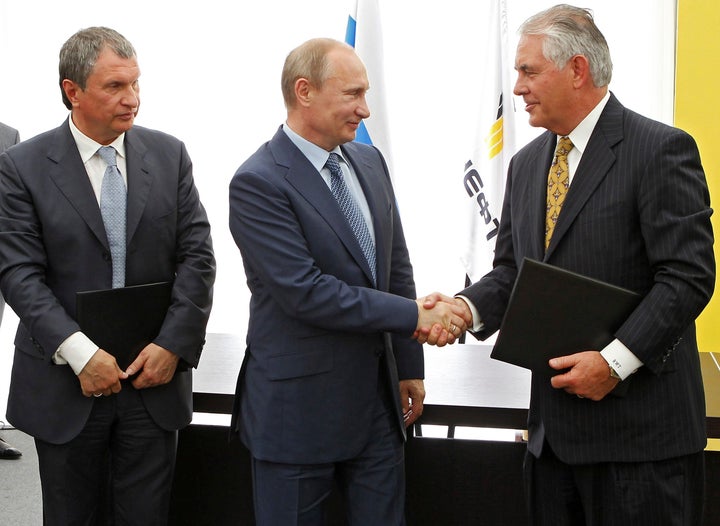 Perhaps the biggest deal that the U.S. sanctions shut down was the remarkable 2011 agreement that Putin and Rosneft, Russia’s state oil company, brokered with Exxon and its CEO, Rex Tillerson. The two sides called the agreement a “Strategic Partnership.” The plum in this deal, potentially worth hundreds of billions of dollars, was new exploration for offshore oil and gas in the Russian Arctic. (The drilling deal was facilitated by global warming that has melted Arctic ice; some have asked whether Exxon was sharing with Rosneft its knowledge and modelling of accelerating climate change, even as it continued to fund efforts to conceal the risks of climate change from the American people.)